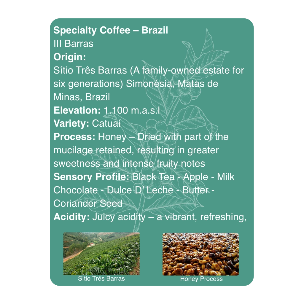 Origin:Sítio Três Barras (A family-owned estate for six generations) Simonésia, Matas de Minas, Brazil